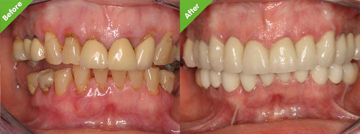 其治疗过程一般分为基础治疗、手术治疗、修复治疗以及维护治疗4个阶段。治疗过程以及方法视牙周病的严重程度而定。其中,修复治疗的方式一般有三种:活动牙、烤瓷牙以及种植牙。
