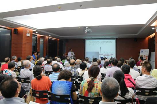 会议厅座无虚席,市民们认真听讲座场景