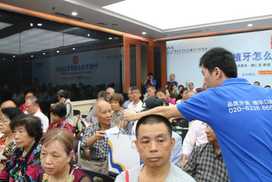 2015年10月24日上午9点30分,南方都市报联合穗华口腔医院举办首场南都口腔名家讲堂活动——《种植牙怎么种更安全耐用?》于穗华口腔医院二楼多功能会议厅隆重开讲。此次公益讲堂特邀了穗华口腔医院院长赖仁发、穗华口腔医院种植科主任冯智强为广大市民作科普授课,旨在呼吁市民关注口腔健康。活动当天,整个会议厅座无虚席,近200名市民会聚与此。