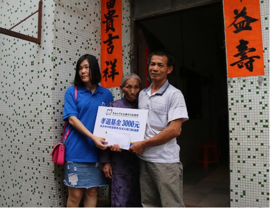 穗华口腔医院为落实重阳节“爱老敬老”活动,同时贯彻落实由广州市天河区文明委、广州市文明办、天河好人志愿服务队、穗华口腔医院联合主办“微笑广州大型口腔健康公益行”活动,特为东莞第五届道德模范赖锡芬送出3000元孝道基金,同时呼吁天下所有子女传承中华孝道美德,关注父母口腔健康。