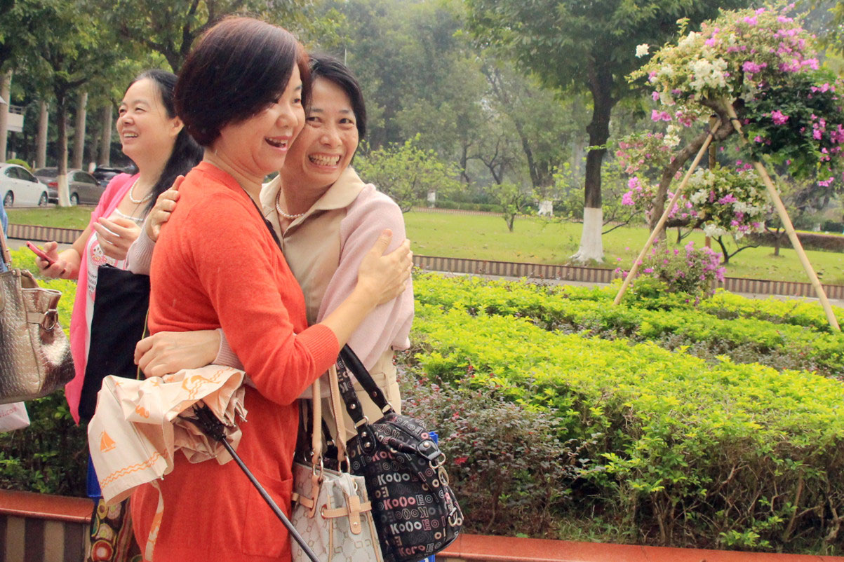 11月16日,暨南大学迎来了109岁生日。15日上午,来自海内外的数百名85届校友携着“相约三十年”的约定,重返母校,齐聚校友楼前。细雨蒙蒙,他们拥抱、欢笑,他们感慨、撒娇,孩子似的。“相约三十年”的主题展板上印着他们年轻时的照片,一张张熟悉的面孔,穿梭时间与空间,就像回到了从前。快门声不停地作响,欢笑声在细雨中激荡。