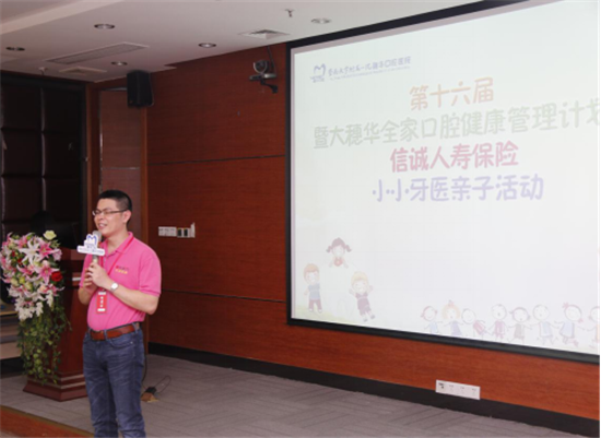 信诚人寿保险的朱总发表了热情洋溢的致辞,他表示:和穗华口腔医院联手举办的这场小小牙医活动,不仅是为了培养小朋友们的爱牙意识,更是为了引起家长们对儿童口腔健康的关注。