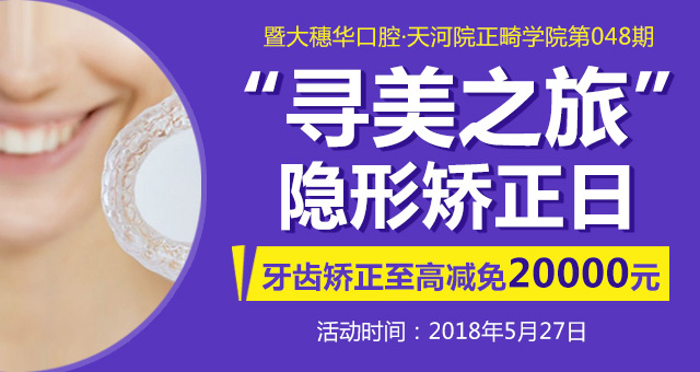 5月27日,穗华口腔医院天河院将举行穗华口腔医院·正畸学院第48期“寻美之旅”隐形矫正日,口腔医学专家亲临现场授课,为市民带来精彩的隐形矫正讲座。现场更有真人案例现场分享,正畸专家现场解疑所有牙齿矫正问题,在这个矫治日,助力您寻到属于自己的美丽,成为自己人生的主宰者!