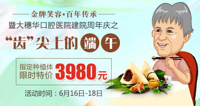 浓浓端午情,恰逢在穗华口腔医院周年庆之际,在如此欢庆的时刻,怎能因为缺牙而失去了享受美食的幸福呢?穗华口腔医院特推出周年庆之“齿”尖上的端午特惠活动,感恩回馈广大市民,为缺牙群众带来空前的盛惠。