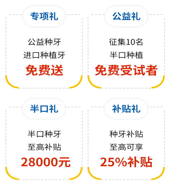 想种牙又觉得太贵?为帮助更多的牙缺失市民以亲民价格用上高品质种植体,多家知名种植体厂家将联合穗华口腔举办好牙力PK赛进行种牙专项援助。从即日起征集种牙人、缺牙人、戴活动假牙的人进行牙力PK赛,享高额种牙补贴,更有机会免费种牙。