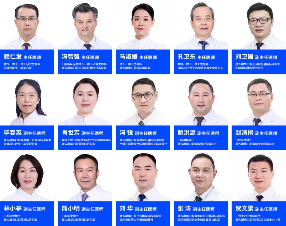 2022《全民口腔健康计划》活动名医会诊由暨南大学博士生导师、岭南名医赖仁发教授,暨南大学博士生导师、eBrace个性化舌侧矫治器主要发明人孔卫东教授、暨南大学硕士生导师冯智强博士等临床经验丰富的院长博士团队组成,通过精湛的专利技术和雄厚的诊疗实力,以专业、高效、优质的诊疗服务让患者重获口腔健康,受到众多口腔患者的高度好评!