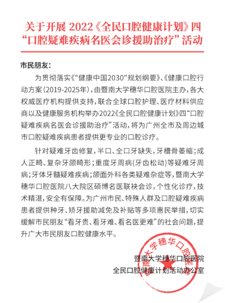 2022《全民口腔健康计划》四“口腔疑难疾病名医会诊援助治疗”活动已接近尾声,从4月1日起开展至今,在广州近半个月疫情的影响下,活动依然获得众多市民街坊的欢迎。即使口腔义诊活动因疫情暂停,线下报名受阻,但线上官方渠道畅通,成为广大市民报名领取补贴及预约专家的热门方式。