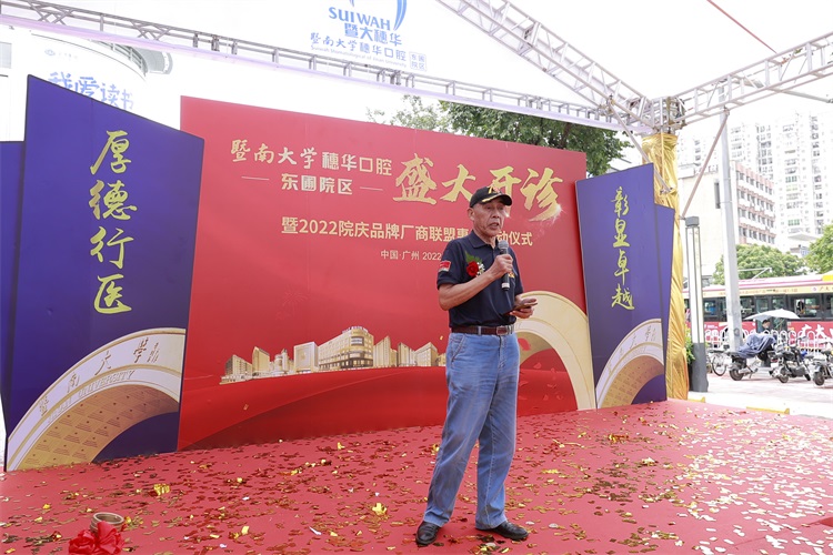 “(暨南大学)穗华口腔东圃院,盛大开诊启动欢,退休老兵来助战,可喜可贺笑开顔……”8月5日上午,在穗华口腔医院第九家分院东圃院区开诊之际,迎来了一位特殊的种植牙患者,他就是军事体育学教授舒进军长者。