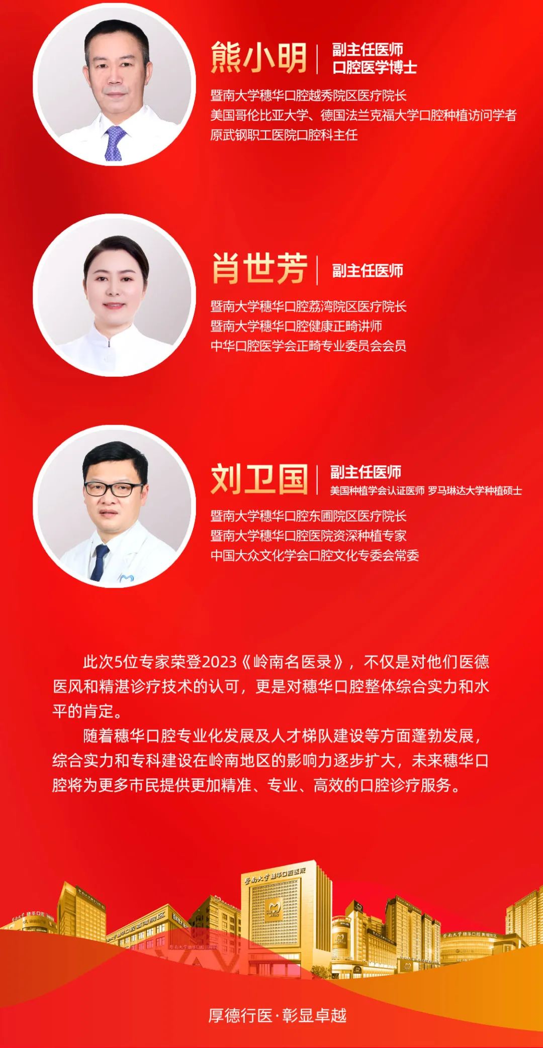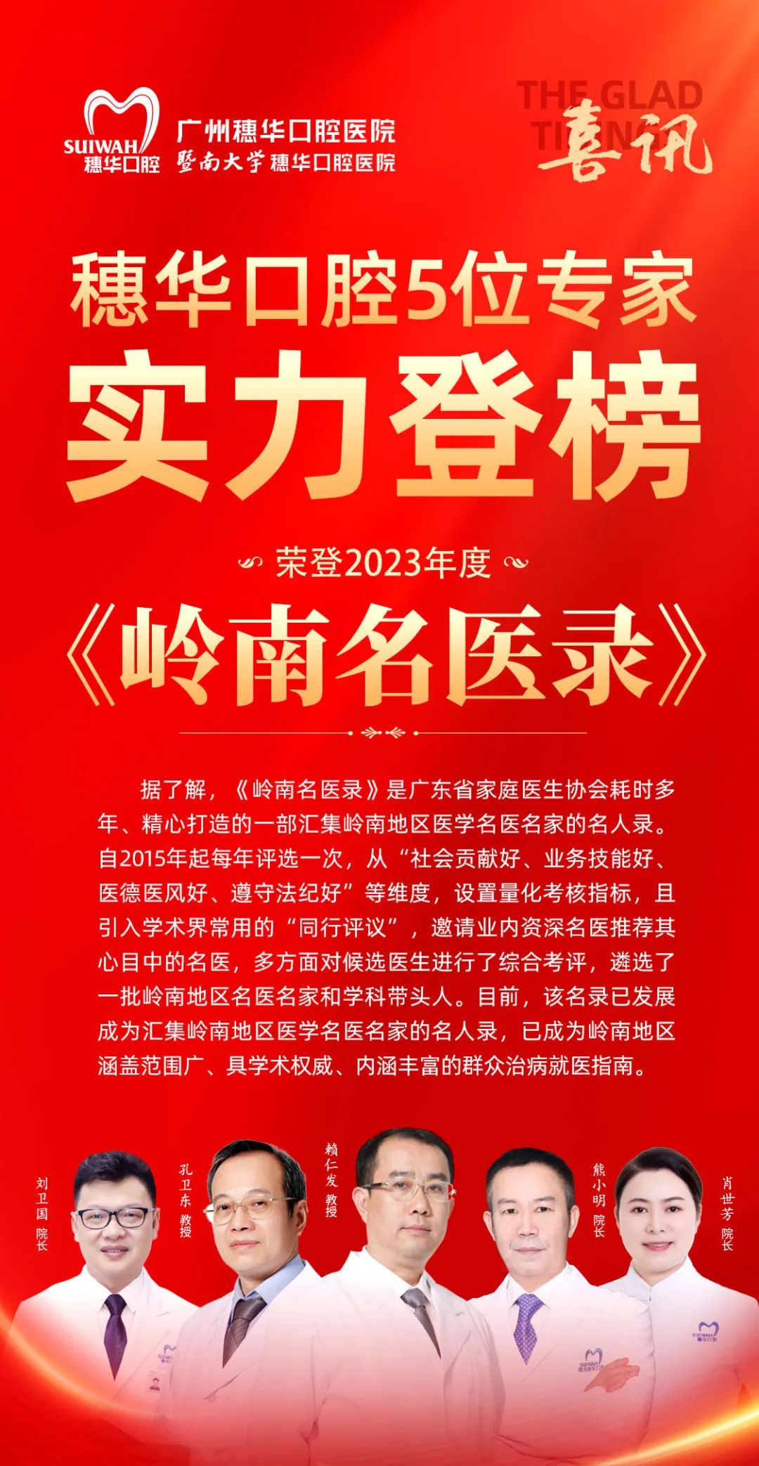 喜讯!穗华口腔5位专家荣登2023年度《岭南名医录》