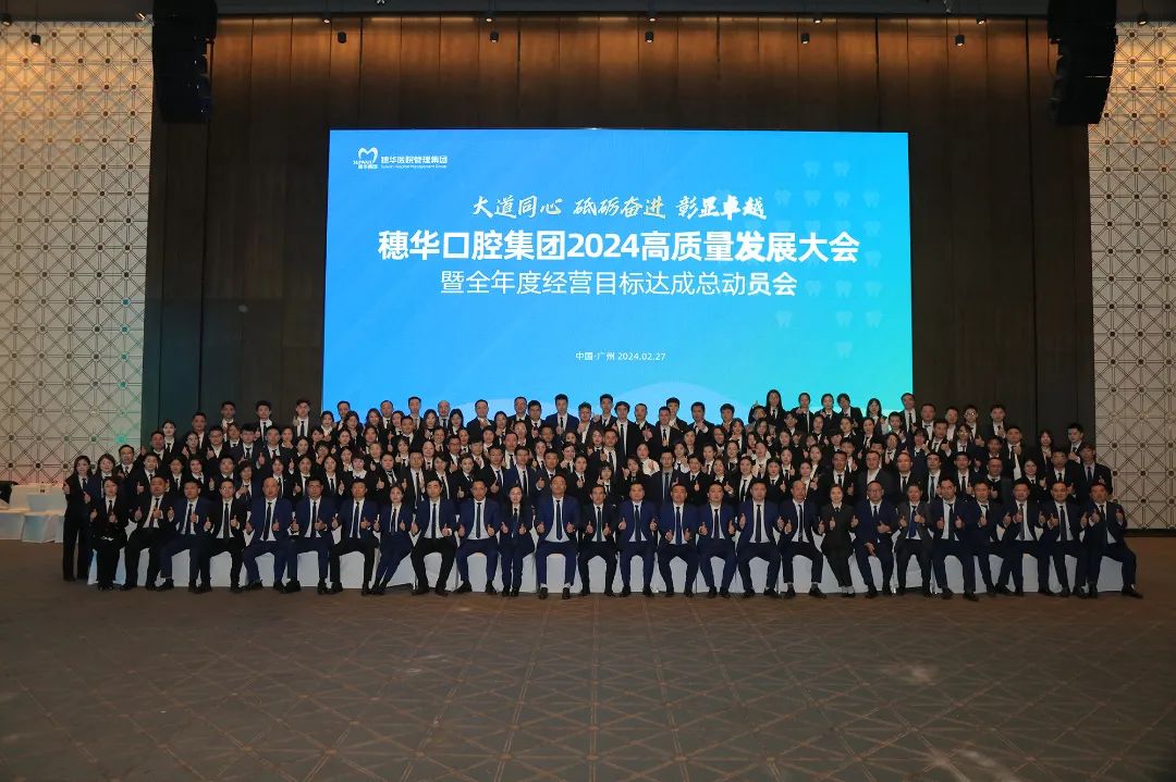 2 月 27 日,穗华医院管理集团成功举办了以 “大道同心 砥砺奋进 彰显卓越” 为主题的 2024 高质量发展大会暨全年度经营目标达成总动员会。穗华口腔集团 180 多位领导骨干齐聚一堂,吹响了集团扎实推进高质量发展的冲锋号,为全年保持良好发展态势描绘了奋进蓝图。