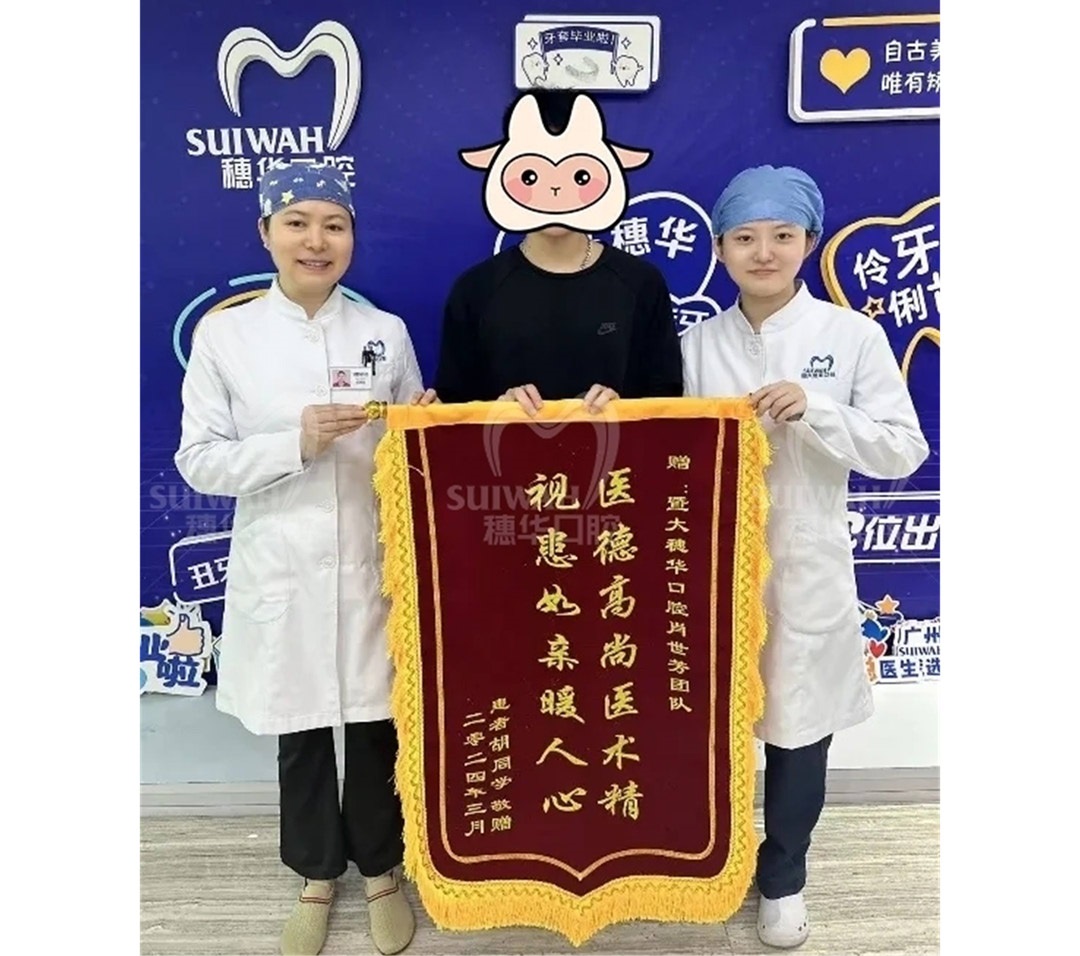“感谢肖院长这2年的精心诊治,我终于可以咧嘴笑了。”日前,一名刚结束牙齿矫正的小伙子,将一面写着“医德高尚医术精视患如亲暖人心”的锦旗赠予穗华口腔荔湾院区肖世芳院长,致谢医护团队让他重拾健康与自信。
