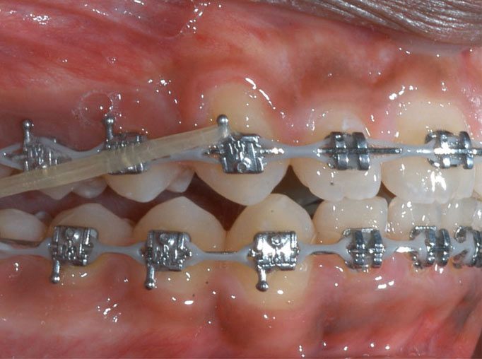 牙齿矫正有可能出现的问题是牙齿脱矿和食物嵌塞。牙齿脱矿多见于不好好配合的青少年患者,预防措施主要是牙医要做好口腔卫生的教导工作,对业已形成的白垩色改变,则可以通过修复的方法进行有效的改善。